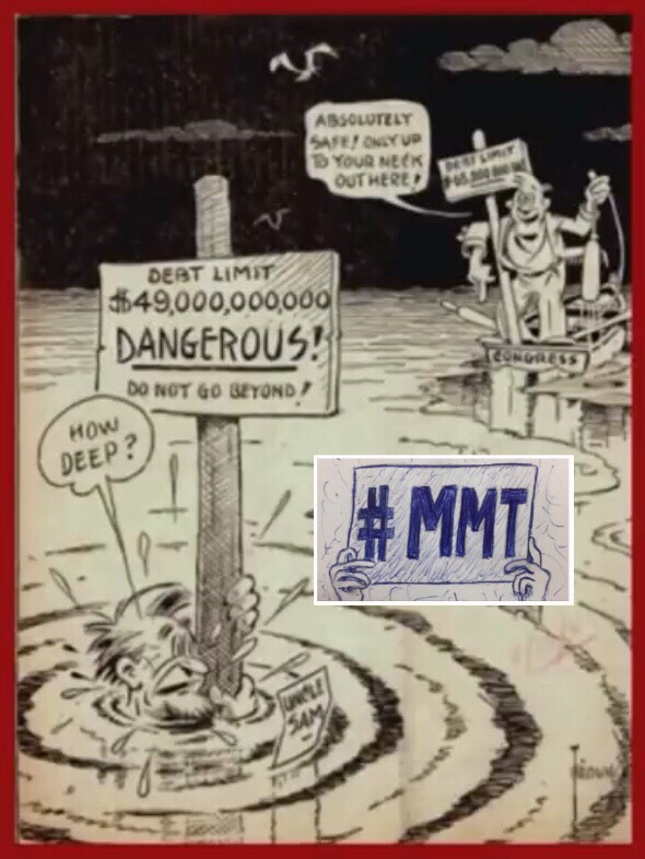 The red-bordered screenshots (including the top-image to this post) come from Stephanie Kelton’s 2018 lecture, “But How Will We Pay for It? making Public Money Work for Us.” This was part of the Stonybrook University Presidential Lecture Series. (With thanks to Joe White in the Facebook group Intro to MMT – Modern Monetary Theory for directing me to this video.)