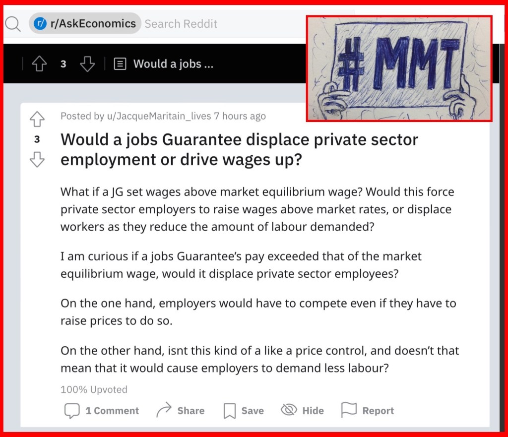 A minimum wage via a JG is a floor. That floor is the minimum level of what is needed to live with dignity and social inclusiveness. It can be framed as “price control” or it could be framed as “protecting human beings from exploitation”.